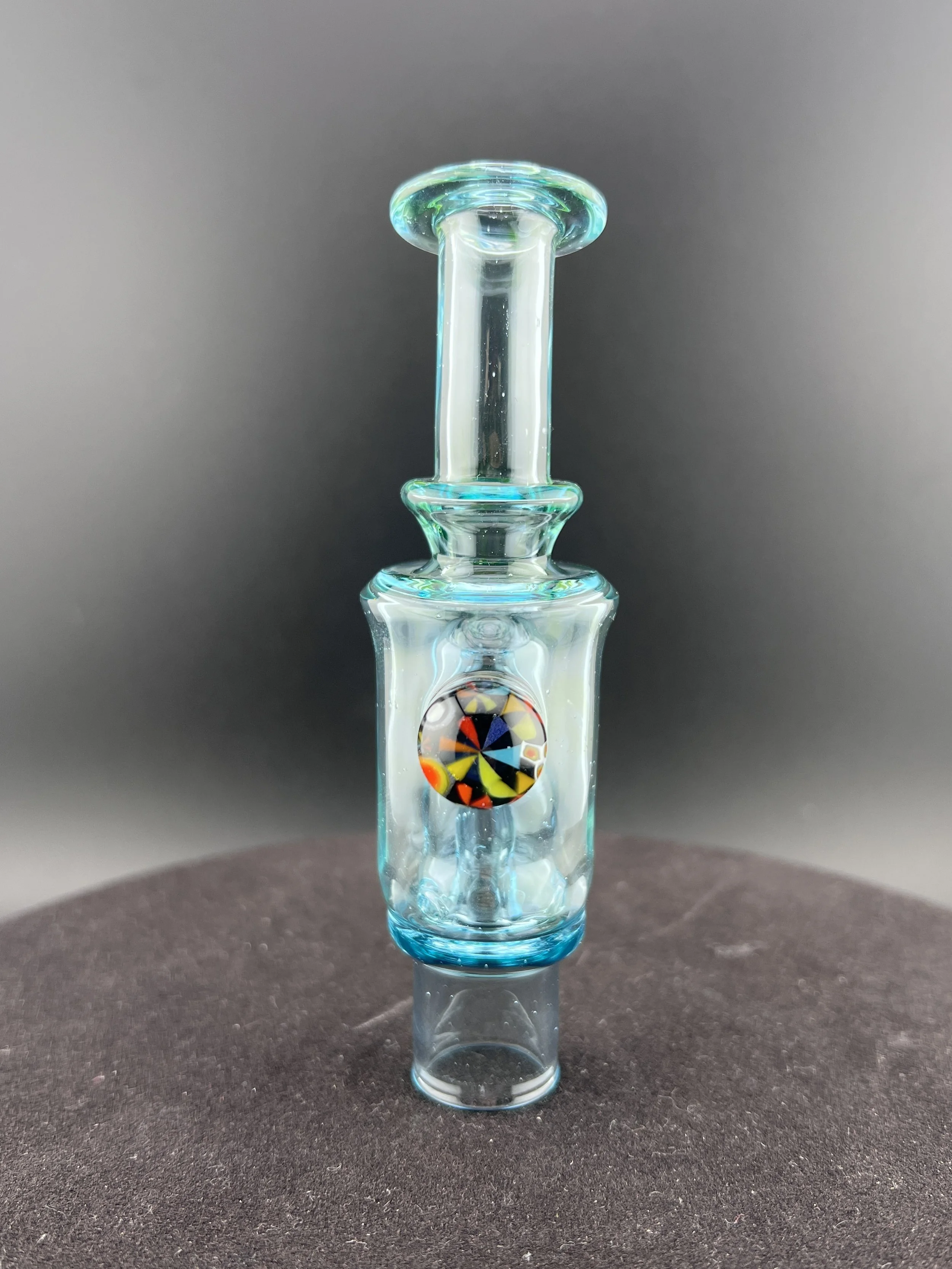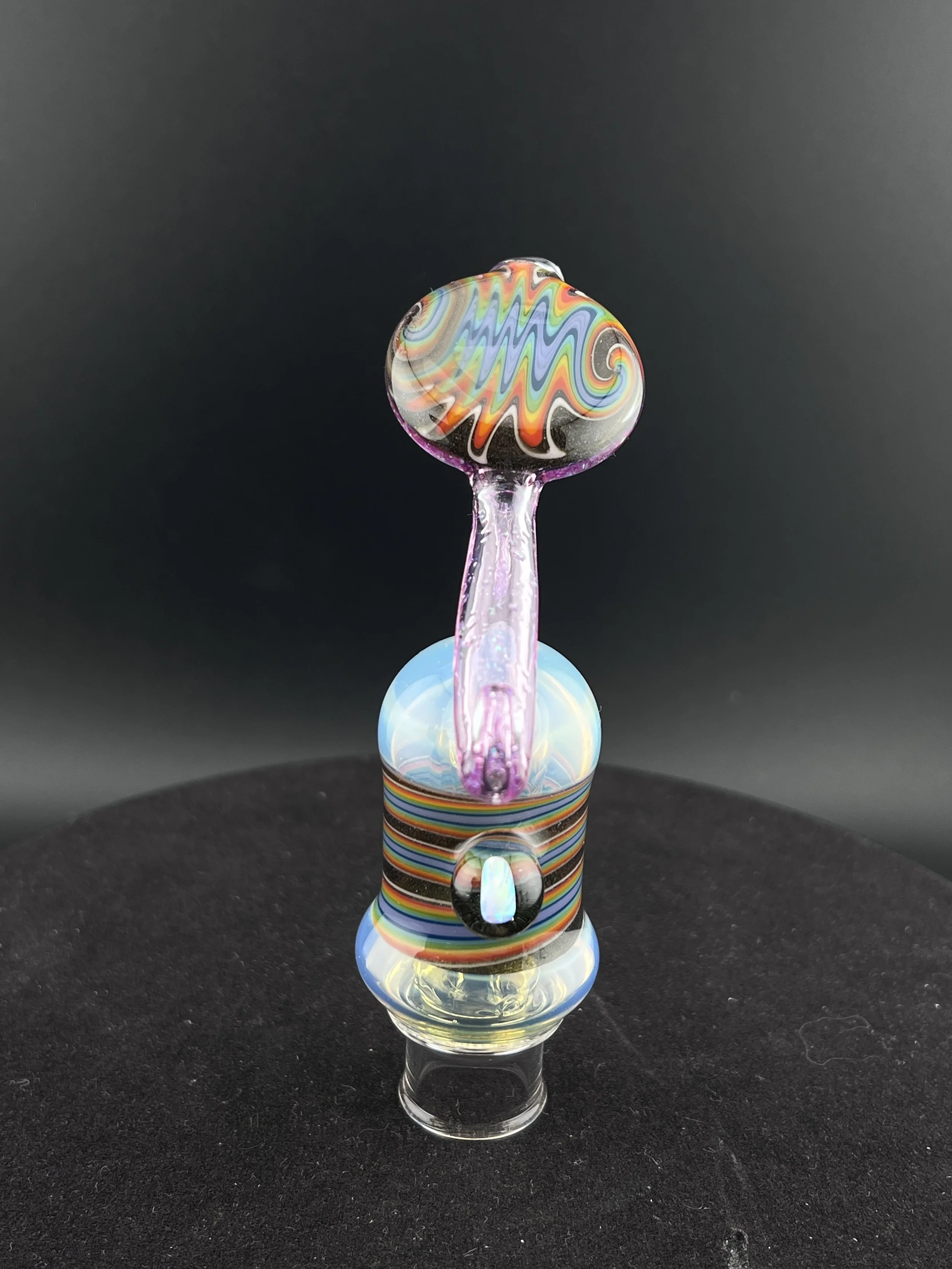 Drdabber ghost 2 bub made with an old school flare! This bub is made up of ns yellow over lucid, rainbow and steel wool spiral and wigwag, and some royal jelly crushed opal! has a old school funky bub neck and a 3 hole perc!